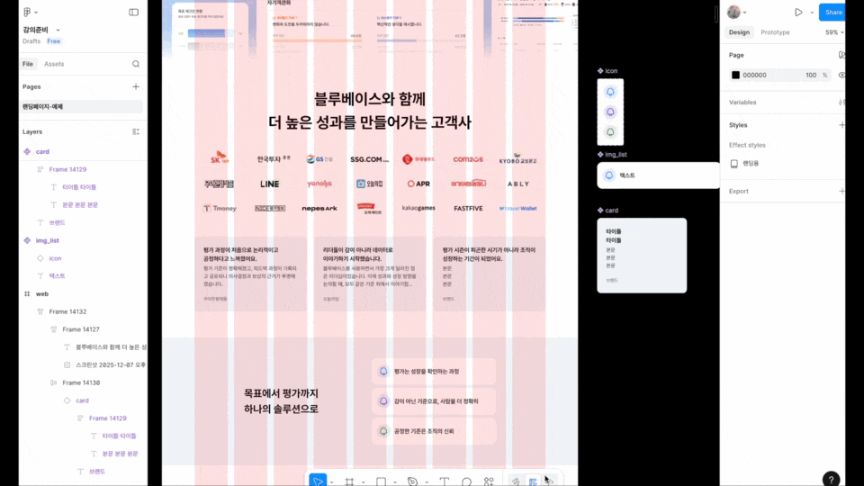 피그마를 처음 배우는 단계부터, 실무에서 실제로 사용하는 방식과 사고 과정까지 연결해 드립니다.
