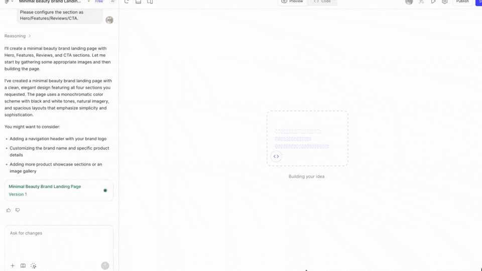 히어로·피처·CTA 섹션을 나누고 그리드·타이포그래피·버튼 스타일을 잡아 실제 서비스용 한 페이지를 완성합니다.