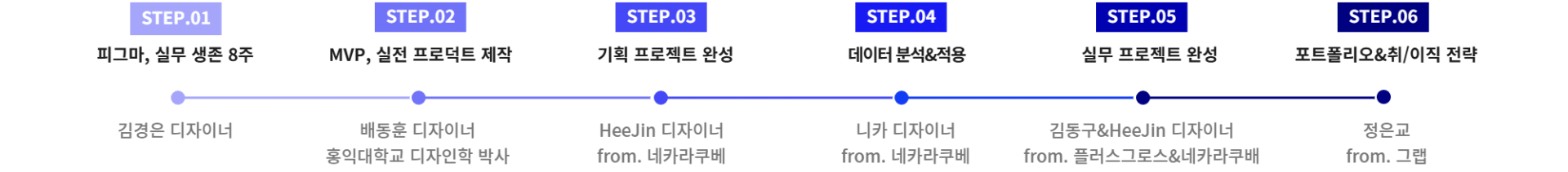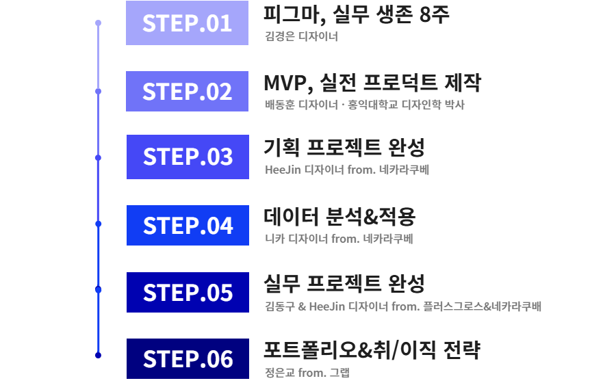 국내 UIUX 최고의 취업 교육을 위해 라인플러스, 카카오스타일, Plus-X 경력의 업계를 선도하는 최고의 실무자들이 모였습니다 |